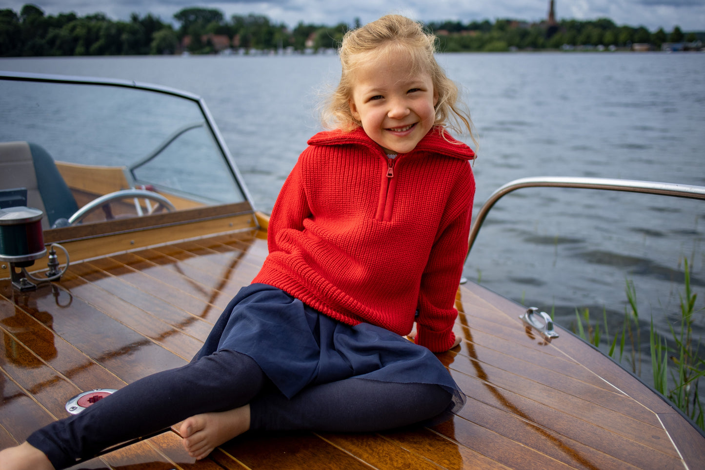 Der Kinder-Troyer, auch als Kinder-Seemannspullover bekannt, ist der perfekte Begleiter für kleine Abenteurer. Mit seinem charakteristischen Stehkragen und dem praktischen Reißverschluss lässt er sich schnell an- und ausziehen – ideal für den turbulenten Alltag. Ob auf dem Spielplatz, beim Ausflug in die Natur oder an kalten Schultagen: Der Troyer hält zuverlässig warm und macht durch sein maritimes Design auch optisch Eindruck.