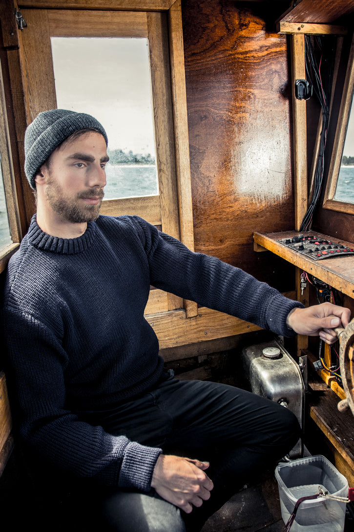 Seit weit mehr als 100 Jahren tragen Generationen von Seeleuten diesen Seemannspullover aus Schurwolle.